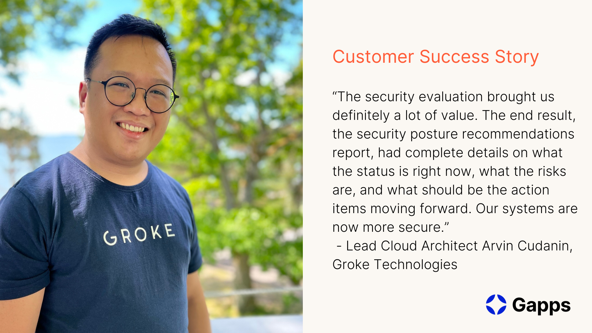 “The security evaluation brought us definitely a lot of value. The end result, the security posture recommendations report, had complete details on what the status is right now, what the risks are, and what should be the action items moving forward. Gapps helped us to understand where we are in the Google Cloud and how we can harden our security posture. Our systems are now more secure.” – Arvin Cudanin, Lead Cloud Architect